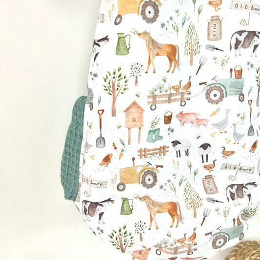 Su tejido es 100% algodón y todas ellas disponen siempre de forro para que la calidad, textura y consistencia sea la máxima. Así, y gracias a la calidad de la tela, nos aseguramos que te duran hasta que al peque ya le quede pequeña. Y ya la puedes guardar para el próximo peque de la casa o para un primito, como hacían nuestros padres con nosotros.